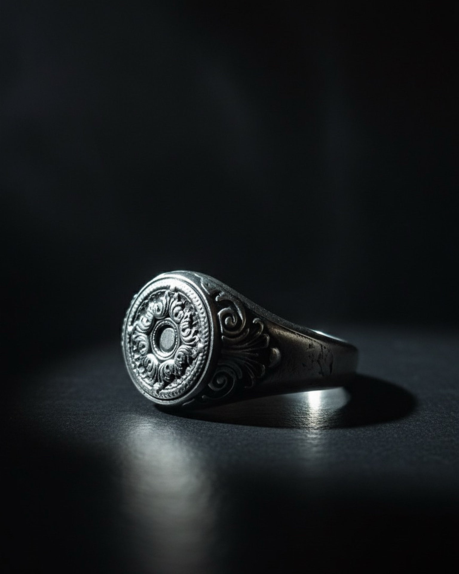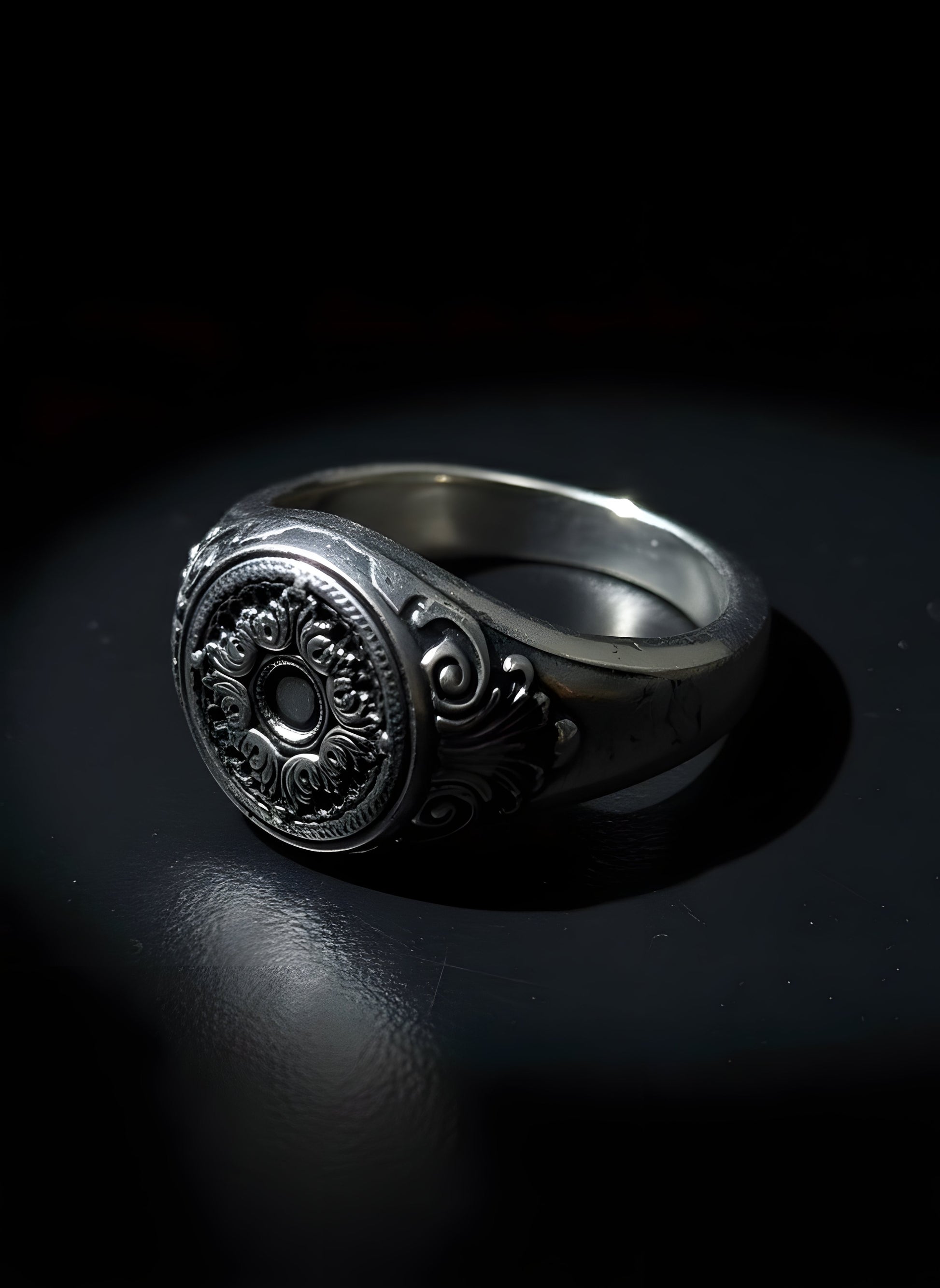 925 Sterling Silver. Rounded signet ring with ornate decoration and antiqued finish. A comfortable piece for casual day to day wear or complimentary piece to wear alongside much bigger statement rings.